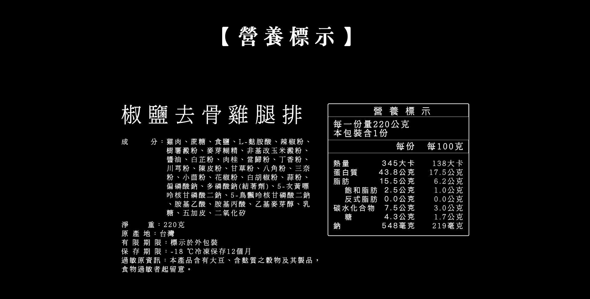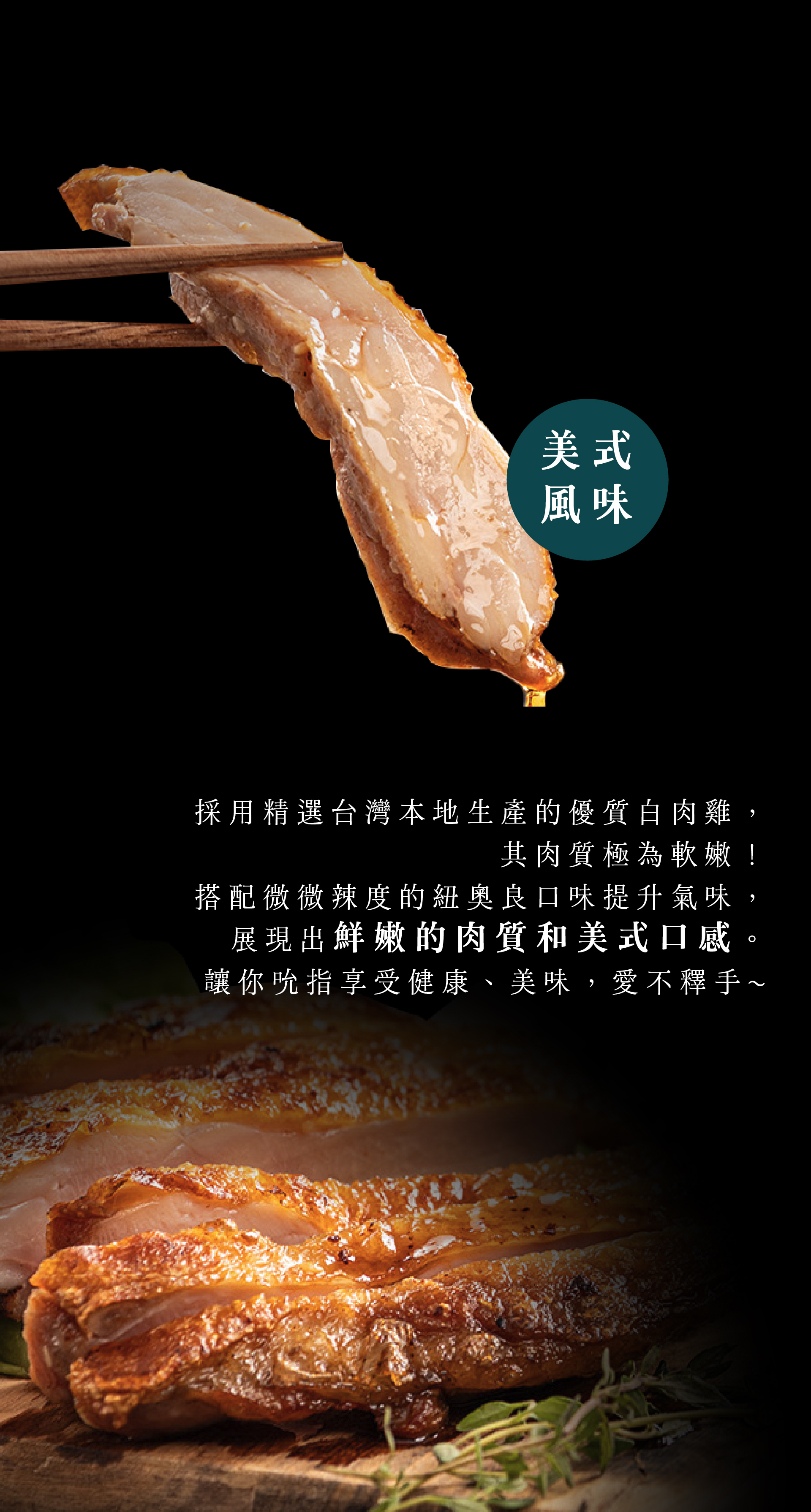 採用精選台灣本地生產的優質白肉雞,