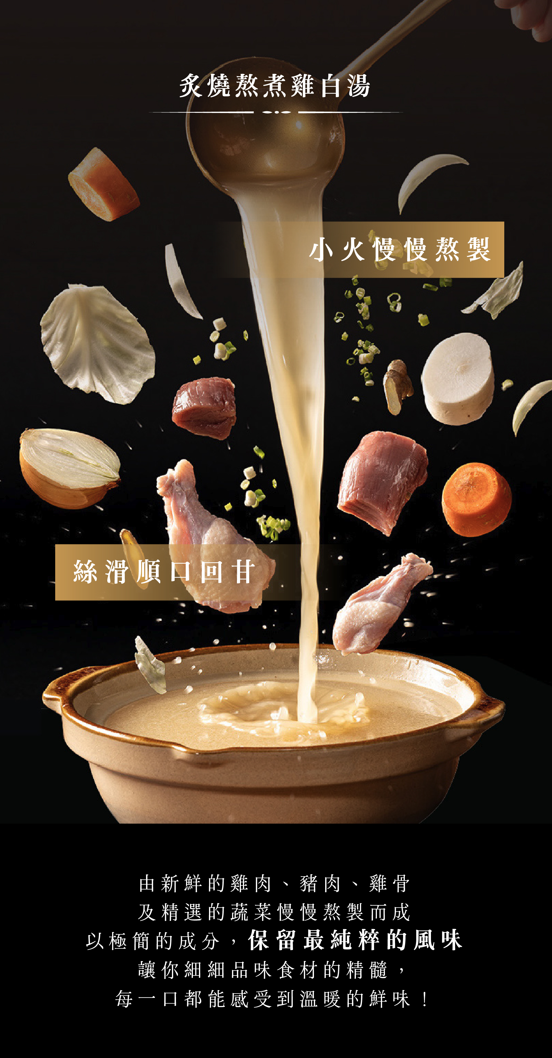由新鮮的雞肉、豬肉、雞骨及精選的蔬菜,