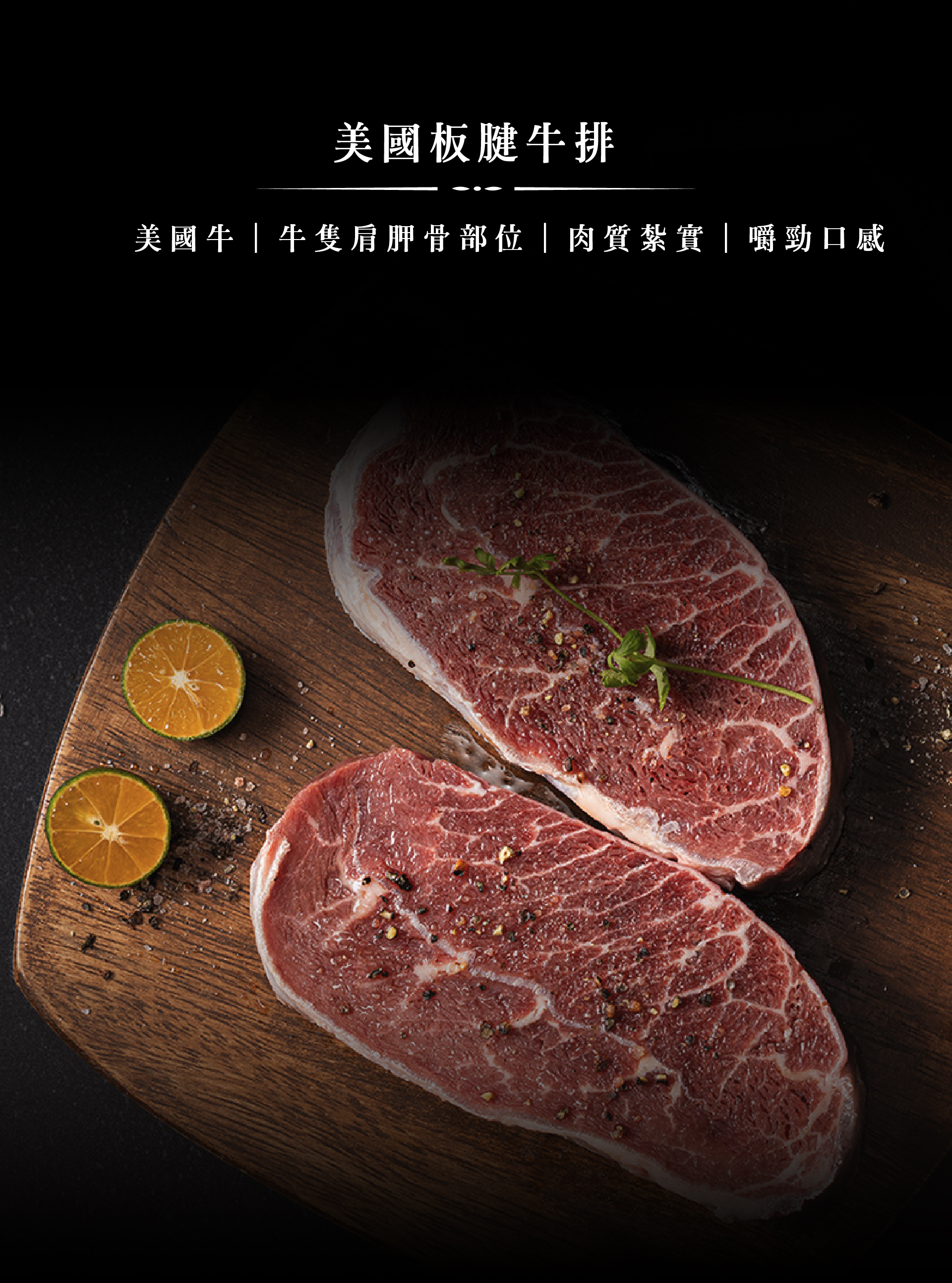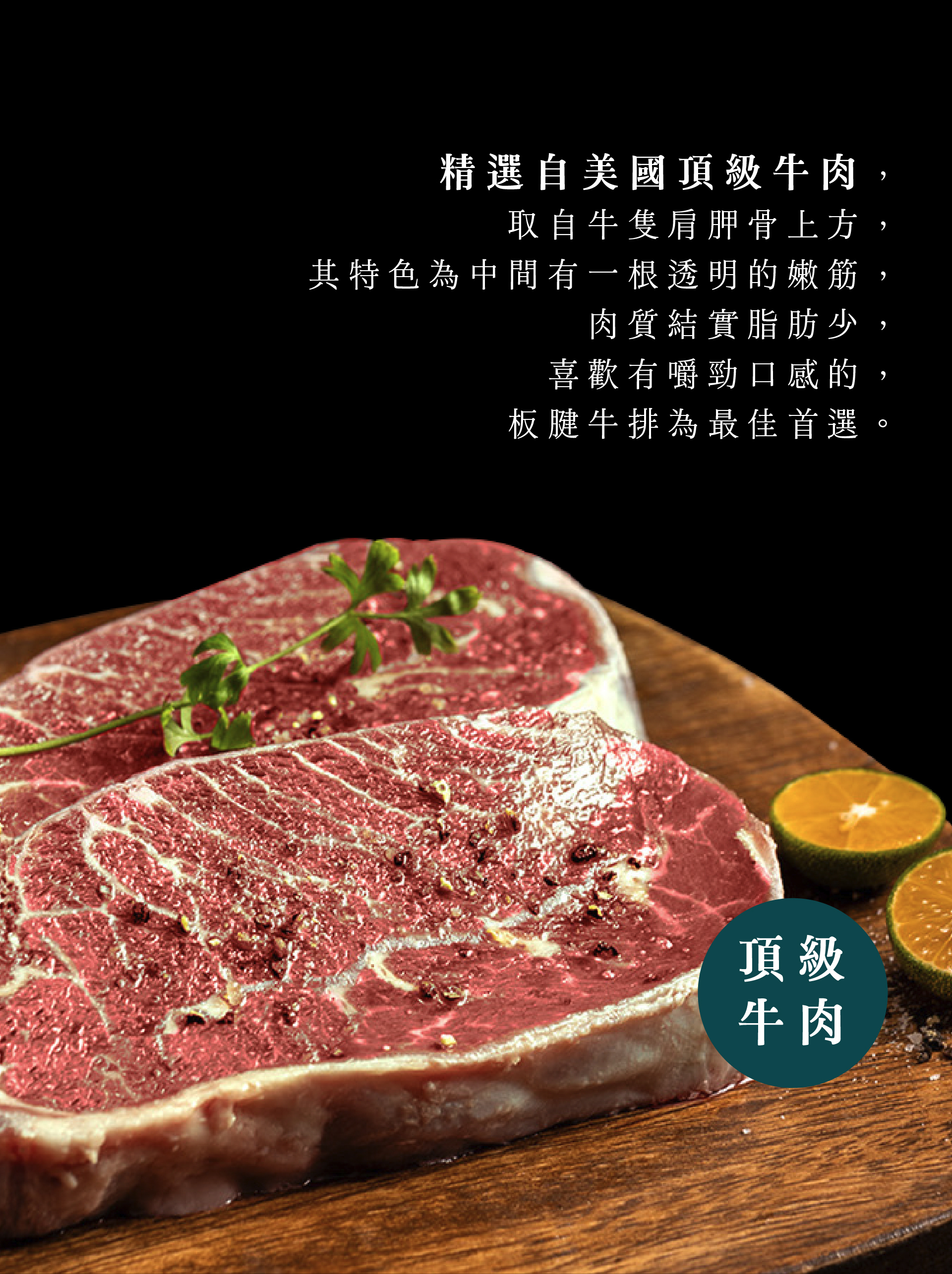 精選自美國頂級牛肉,取自牛隻肩胛骨上方。